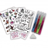 Stwórz własne oryginalne tatuaże lub spróbuj przerobić ulubione motywy. Zestaw jest łatwy w użyciu i zapewnia zabawę na każdą okazję.