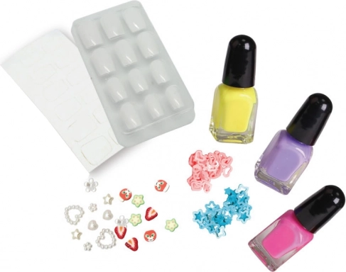 Stwórz własny salon piękności w domu! Ten kreatywny 3D zestaw do paznokci oferuje wszystko do szybkiego i zabawnego zdobienia: 3 kolorowe lakiery, 12 sztucznych paznokci, 12 naklejek, 2 rodzaje cekinów i 19 szt. ozdób 3D. Dzięki prostej instrukcji efektowny domowy manicure wykonają nawet początkujący. Świetny dla dzieci od 6 lat.