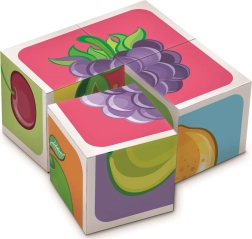 Kolorowe drewniane klocki z motywami owoców marki Dino ucieszą małych konstruktorów od 3. roku życia. Z 4 klocków ułożysz 6 różnych obrazków owoców albo zbudujesz małą wieżę. Bezpieczne, z polskiego świerku, wspierają małą motorykę, wyobraźnię i kreatywność.