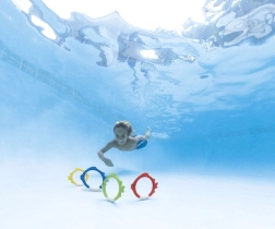 Po wrzuceniu do wody pierścienie automatycznie ustawiają się na dnie, dzięki czemu dzieci mają wyraźny cel do zanurzenia i ćwiczą nurkowanie w naturalny i zabawny sposób.
