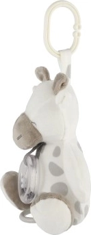 Dzięki praktycznemu klipsowi/pętli żyrafkę łatwo przymocujesz do łóżeczka, wózka lub fotelika samochodowego – idealna w domu i w podróży.