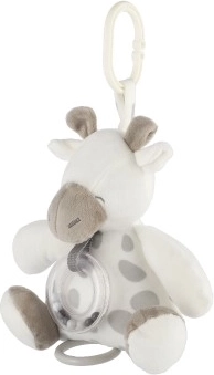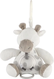 Po pociągnięciu za sznurek żyrafka odtwarza delikatną melodię, która wycisza niemowlę i pomaga mu zasnąć zarówno w łóżeczku, jak i w podróży.