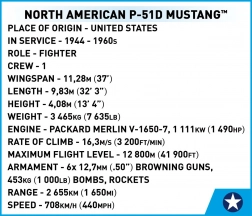 North American P-51D Mustang to jeden z najsłynniejszych myśliwców z czasów drugiej wojny światowej, teraz wiernie odtworzony jako zestaw konstrukcyjny. Model składa się z 152 części do dokładnej rekonstrukcji samolotu w skali 1:48, inspirowanej historycznymi szczegółami.