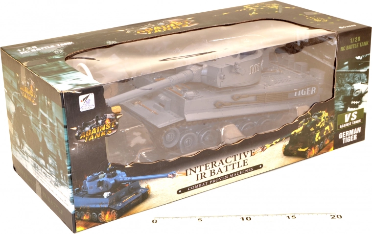 Wydajny czołg zdalnie sterowany Tiger wprowadza entuzjazm do każdej dziecięcej zabawy. Ten model, o długości 28 cm, jest wyposażony w efekty świetlne i dźwiękowe, które dodają autentyczności. Idealny do zabawy zarówno na zewnątrz, jak i wewnątrz.