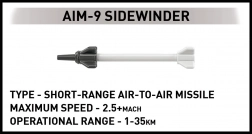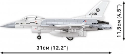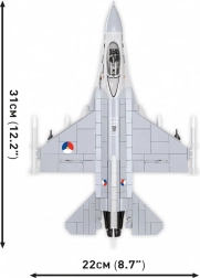 Z 425 klocków COBI można zbudować ten kultowy myśliwiec z detalami w skali 1:48. Model zawiera rakiety AIM-9 Sidewinder i AIM-120 AMRAM, które są zdejmowane i regulowane. Zestaw zawiera także figurkę pilota z maską tlenową i hełmem wyposażonym w nadruki holenderskich sił powietrznych.