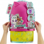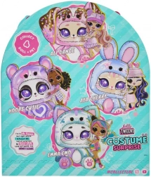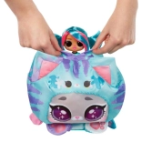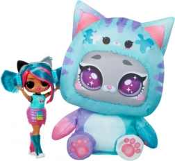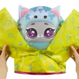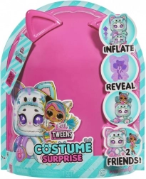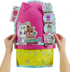 Przygotuj się na największą rozpakowywaną niespodziankę z L.O.L. Surprise Tweens Costume. Najpierw otwórz zamek na spodzie opakowania i usuń różową osłonkę, aby odsłonić tajemniczy papier pakunkowy! Obserwuj, jak papier się powiększa, a po pełnym nadmuchaniu rozerwij go, aby odkryć uroczy turkusowy koci kostium! Ale to nie koniec niespodzianek! Otwórz pluszową kocią głowę i znajdź w środku zachwycającą lalkę Emo Emma Tweens!