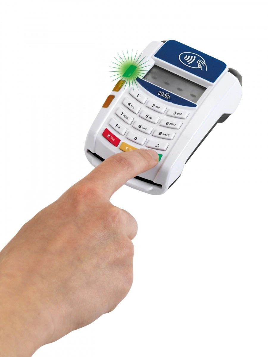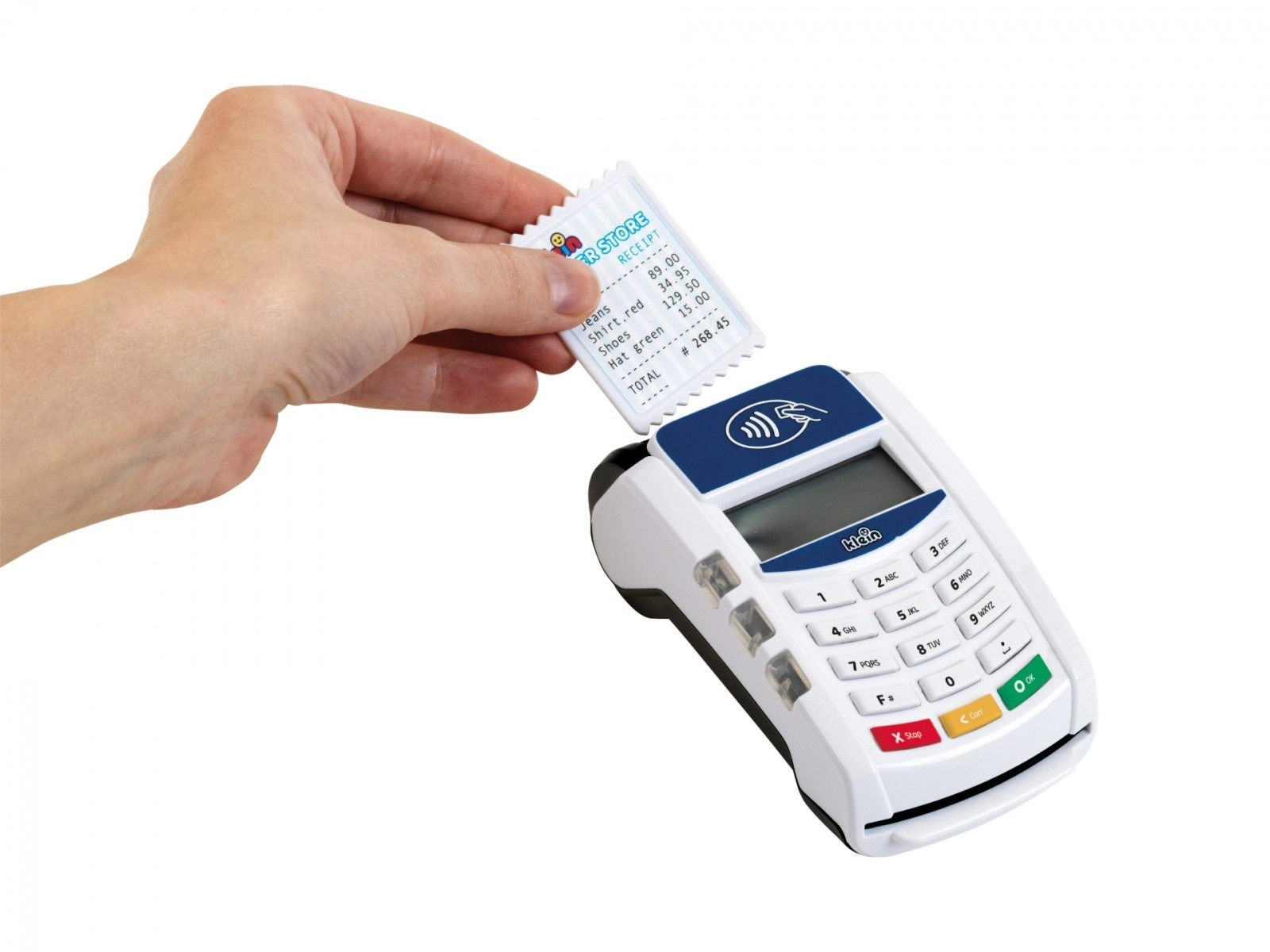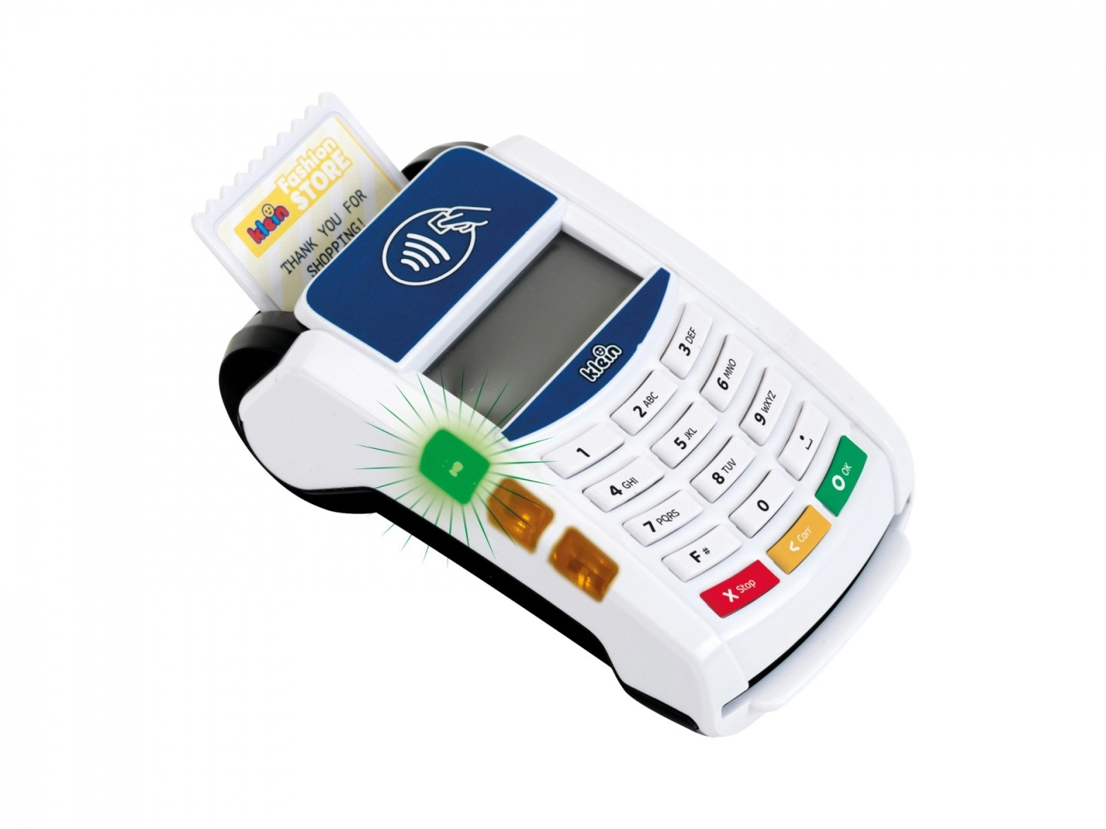 Terminal płatniczy do złudzenia przypomina prawdziwe urządzenie. Ma działające przyciski i czytnik płatności bezdotykowych. Podczas użytkowania emituje delikatne światło i dźwięki. W trakcie zabawy wystarczy wprowadzić i zatwierdzić kwotę, przyłożyć kartę do terminala, wpisać i potwierdzić PIN, a płatność jest gotowa. Przeciągnięcie dołączonej karty płatniczej przez czytnik jest opatrzone realistycznymi dźwiękami, tak jak w prawdziwym urządzeniu. Do prawidłowej zabawy potrzebne są baterie, które nie wchodzą w skład zestawu.