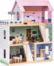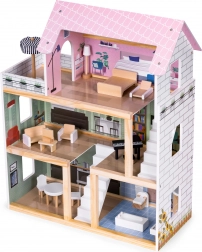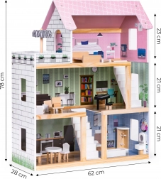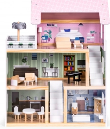 Domek dla lalek ECOTOYS zawdzięcza swój urok dobrze dobranym kolorom i specjalnie zaprojektowanym pomieszczeniom. Dzięki temu świetnie wygląda nie tylko w pokoju dziecięcym, ale także w salonie i wzbudza zachwyt wszystkich domowników.