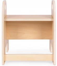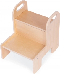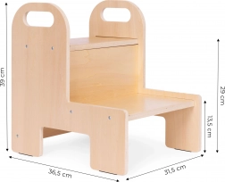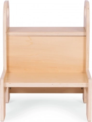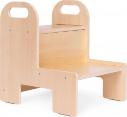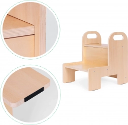 Mocna sklejka 12 mm, zaokrąglone krawędzie oraz dwa pojemne stopnie zapewniają dzieciom pewność podczas codziennego użytkowania w kuchni i łazience.