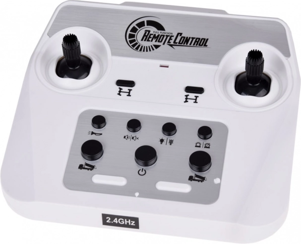 Płynna jazda do przodu/tyłu i skręcanie, włączanie/wyłączanie świateł i dźwięków, regulacja zbieżności przedniej osi, wyłącznik lamp ostrzegawczych oraz sterowanie skrzynią.