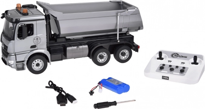 Zdalne sterowanie 2,4 GHz gwarantuje płynne prowadzenie, kontrolę świateł i dźwięków oraz elektryczne podnoszenie/opuszczanie skrzyni. Praktyczne jest również automatyczne parowanie i tryb oszczędzania baterii. Duże koła z gumowymi oponami z bieżnikiem trzymają się podłoża na różnych nawierzchniach, a do tego możliwa jest regulacja zbieżności przedniej osi.