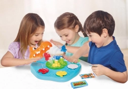 Interaktywna gra planszowa z krokodylem dostarcza emocji i zabawy w każdej rundzie. Gracze odwracają karty ze zwierzętami – gdy tylko pojawi się krokodyl, czas błyskawicznie zareagować i nacisnąć własny liść lilii. Kto najczęściej umknie krokodylej paszczy w pięciu rundach, wygrywa!