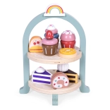Zestaw zawiera dzbanek, filiżanki, tacę, talerzyki oraz wiele różnych słodkości, które zapewnią godziny zabawy.