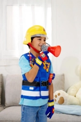 Daj swoim dzieciom poczucie bycia prawdziwym bohaterem z tym kaskiem licencjonowanym według Strażaka Sama. Kask jest wykonany z wysokiej jakości plastiku, wyposażony w solidne piankowe podkładki dla wygody i bezpieczeństwa. Wewnątrz znajduje się regulowany mikrofon, który nadaje realizm roli Twojego dziecka.