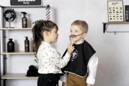 Odkryj świat fryzjerstwa z naszym kreatywnym zestawem Barber & Cut. Ten zabawny komplet zawiera wąsy z kilku warstw filcu, materiałowy pelerynę, maszynkę do golenia, buteleczkę z pianką do golenia oraz ręcznik. Idealny dla dzieci od 3 lat, wspiera rozwój wyobraźni.