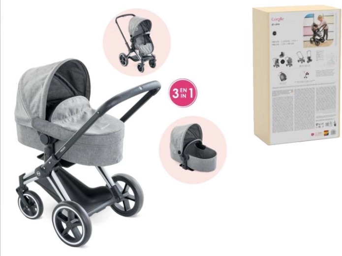 Stylowy wózek dla lalek inspirowany oryginalnym modelem CYBEX PRIAM oferuje funkcję 3 w 1 – spacerówkę, gondolę oraz przenośne łóżeczko. Ma regulowaną budkę, zdejmowaną osłonę, solidny kosz i można go łatwo odchylić i złożyć. Odpowiedni dla lalek o wielkości 36–52 cm.