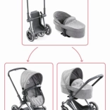 - Uniwersalne zastosowanie 3 w 1 – spacerówka, gondola i przenośne łóżeczko.