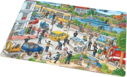 Odkryj świat policji w zabawnej i pouczającej książce dla dzieci, która wspiera opowiadanie historii i rozwój wyobraźni. Dzieci zajrzą na komisariat policji, będą śledzić poszukiwania złodziei biżuterii, rozwiązywać problem dzikiego wysypiska nad rzeką oraz szukać zaginionego pieska. Ta interaktywna książka rozwija słownictwo, uważność i logiczne myślenie poprzez wciągające opowieści z codziennej pracy policji.