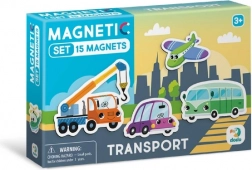 Odkryj magię transportu z magnesami Środki Transportu! Ten atrakcyjny zestaw zawiera 15 pięknie ilustrowanych magnesów z różnymi środkami transportu. Świetne dla dzieci, które chcą się uczyć i rozwijać swoje umiejętności motoryki małej.