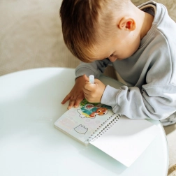 Wodny pędzelek ujawnia kolory na stronie, a po wyschnięciu obraz znika. Idealne do wielokrotnej zabawy w domu i w podróży.