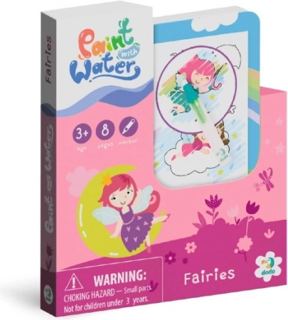 Magiczne malowanie wodą z wróżkami zachwyci każdą małą księżniczkę! Ten praktyczny blok zawiera osiem stron z bajkowymi obrazkami, które ożywają kolorami po napełnieniu pędzelka wodą.