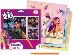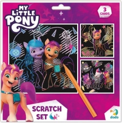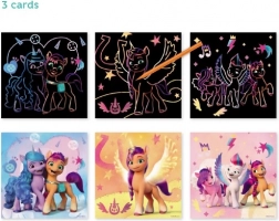Odkryj radość twórczej zabawy z tymi zdrapywanymi obrazkami, które zachęcają do odsłaniania ukrytych barw. Zestaw zawiera trzy różne kolorowe obrazki inspirowane My Little Pony oraz specjalne rysiko do zdrapywania: