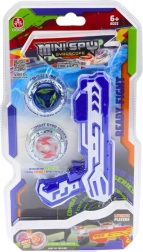 Pistolet wyrzutnia z dwoma metalowymi krążkami ze światłami, niebieski