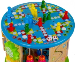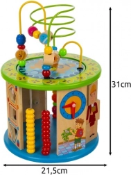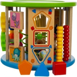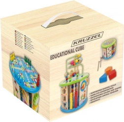 Ta kreatywna kostka została zaprojektowana dla małych odkrywców i oferuje 11 różnych aktywności na wszystkich bokach, w tym na górnej powierzchni. Dzieci ćwiczą rozpoznawanie kolorów i kształtów, uczą się liczyć na liczydle, poznają zasadę działania zegara oraz poprawiają koordynację oko–ręka dzięki labiryntowi z koralikami i innym interaktywnym elementom.