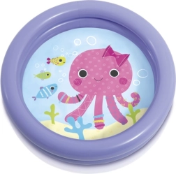 Lekki i kompaktowy dziecięcy basen o średnicy 61 cm i wysokości 15 cm jest idealny na balkon, taras i do ogrodu. Ma dwie nadmuchiwane komory, jest wykonany z trwałego winylu, a dzięki radosnemu wzornictwu ucieszy dzieci w wieku od 1 do 3 lat. Łatwy montaż i składanie, pojemność ok. 17 l przy wysokości lustra wody 8 cm, w zestawie zestaw naprawczy.