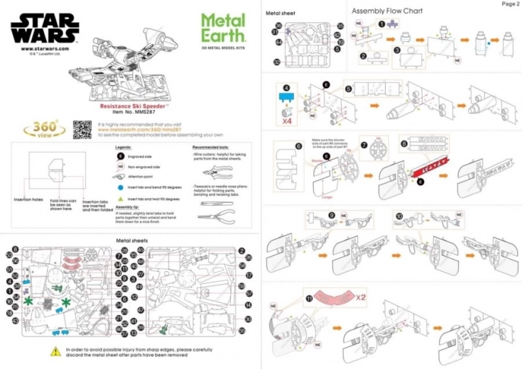Zestaw zawiera stalowe arkusze z elementami oraz instrukcję. Do montażu przydadzą się małe cęgi tnące i cienkie szczypce (nie wchodzą w skład zestawu). Z cierpliwością i starannością stworzysz realistyczne mistrzowskie dzieło, które wyróżni się na półce, biurku lub w gablotce.