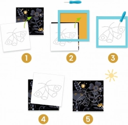 Odkryj angażującą aktywność inspirowaną metodą Montessori. Dzieci bezpiecznie ćwiczą koncentrację, precyzję i siłę nacisku, tworząc piękne podświetlane obrazki. Solidny piankowy i kartonowy uchwyt stabilnie utrzymuje podkłady na miejscu, dzięki czemu praca jest łatwa i pewna.