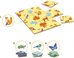 Gra Sologic Impossiblo – zwierzęta oferuje zestaw czterech oryginalnych łamigłówek o stopniowo rosnącym poziomie trudności. Każda łamigłówka zawiera 9 solidnych elementów i ma jasno określony cel: ułożyć motyw tak, aby wszystkie części idealnie do siebie pasowały. Idealna jako szybka rozgrzewka umysłowa lub dłuższa, skoncentrowana zabawa.