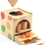 Drewniana układanka BoNBasic to świetny towarzysz dla dzieci, które chcą uczyć się koncentracji. Pudełko z filcowym dnem i pochyloną powierzchnią umożliwia łatwe wyjmowanie elementów.