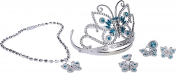 Zachwyć małą elegantkę magicznym zestawem biżuterii dla księżniczek. Opakowanie zawiera koronę, naszyjnik, pierścionek i kolczyki w kolorze różowym lub fioletowym. Idealny jako dodatek do kostiumu karnawałowego lub do zabawy w księżniczkę. Do wyboru motywy motyle lub korony.