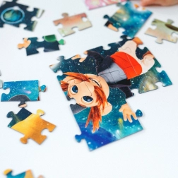Odkryj magię Treflików z tym pięknym zestawem puzzli. Brokat dodaje elementom wyjątkowego wyglądu, a ułożone puzzle stają się piękną ozdobą dziecięcego pokoju.