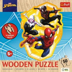 Drewniane puzzle o nieregularnych kształtach wnoszą nowy wymiar układania. Dzieci i dorośli będą się świetnie bawić, szukając 10 specjalnych figurek nawiązujących do motywu SPIDER-MAN, a precyzyjne wykonanie i nasycone kolory zapewnią długotrwałą radość z zabawy.