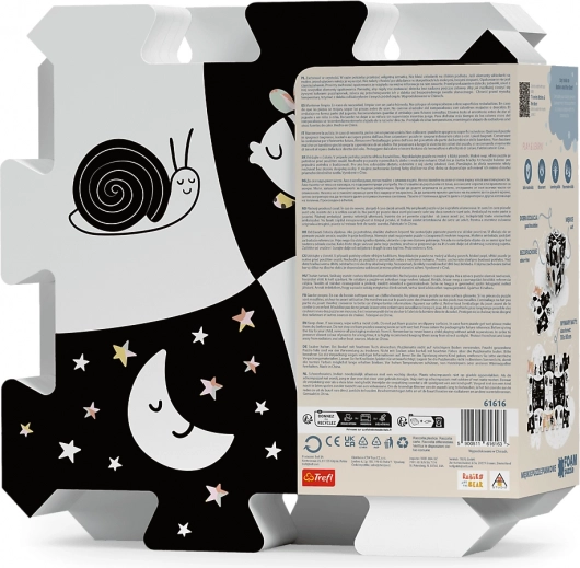 Piankowe puzzle TREFL z postaciami Treflików to świetne rozwiązanie dla bezpiecznej i wygodnej zabawy. Specjalny materiał podobny do grubej karimaty lub wielowarstwowego mirelonu zapewnia doskonałe tłumienie wstrząsów i przyjemne stawianie kroków. Czarno-białe ilustracje działają kojąco i sprzyjają koncentracji.