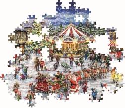 Detaliczna scena jarmarku bożonarodzeniowego z karuzelą, Mikołajem i bogatymi dekoracjami wprowadzi świąteczny nastrój przy każdym układaniu.