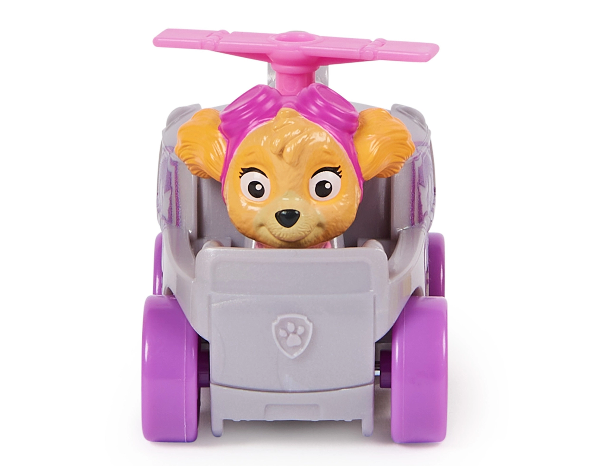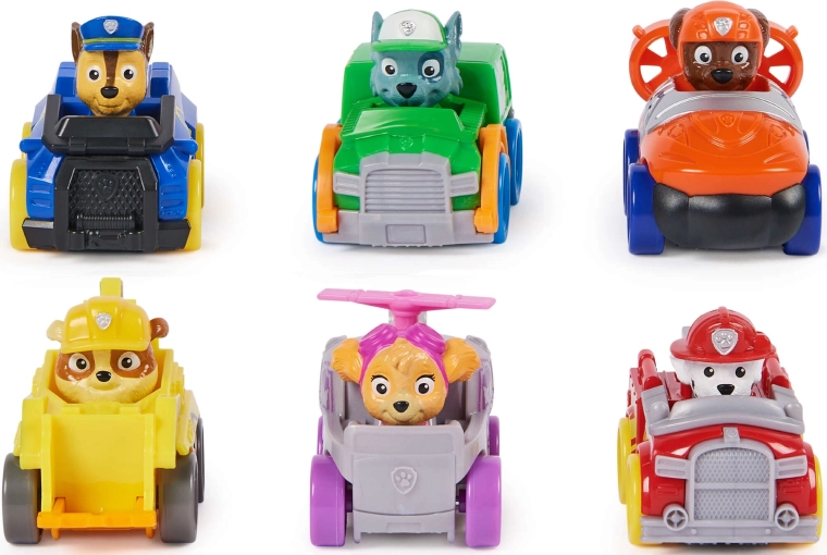 Chase, Marshall, Skye, Rocky, Rubble i Zuma w mini pojazdach gotowych na każdą misję. Idealne do kolekcjonowania i wspólnej zabawy.