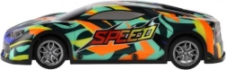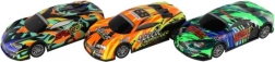 Model wykonano z wytrzymałego plastiku, który znosi typowe dziecięce użytkowanie. Miks kolorów i naklejek nadaje autku atrakcyjny wygląd – od wyrazistej pomarańczy po odważne, wielobarwne kombinacje.