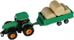 Odkryj urok życia na farmie z naszym traktorem z przyczepą. Ten traktor o długości 30 cm jest wykonany z plastiku i zaprojektowany do długotrwałej zabawy. Dzieci pokochają możliwość odczepiania przyczepy, co poszerza opcje zabawy i wspiera ich kreatywność i wyobraźnię. Zestaw zawiera jeden traktor z przyczepą oraz bele siana, które można łatwo przenosić lub wykorzystać w zabawie w wyobraźni.