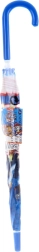 Parasol ozdobiony jest radosnymi motywami z popularnego serialu animowanego, które dzieci uwielbiają. Kolory są żywe i zabawne, co przyciąga uwagę każdego małego odkrywcy.