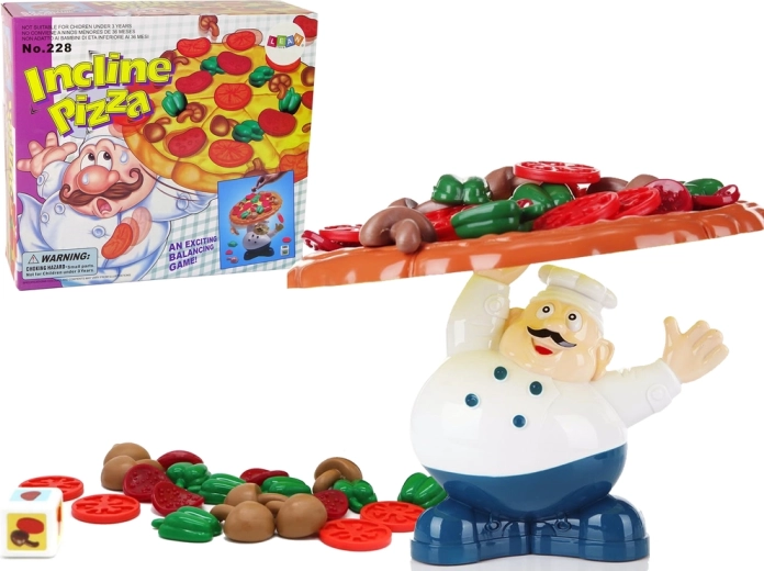Balansuj Pizza to gra, która jest idealna dla dzieci, które uwielbiają pomagać w kuchni, a także dla ich rodziców. Gra zawiera:
