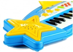 Odkryj radość z muzyki dzięki dziecięcemu keyboardowi z 37 klawiszami, który łączy zabawny design z praktycznymi funkcjami. Kolorowe wykonanie z głośnikiem w kształcie gwiazdy, wbudowane melodie oraz podłączany mikrofon motywują dzieci do tworzenia, śpiewu i pierwszych prób muzycznych. Dzięki wejściu MP3 mogą grać i śpiewać także swoje ulubione piosenki.