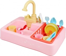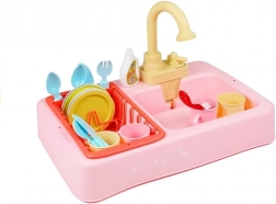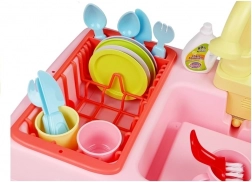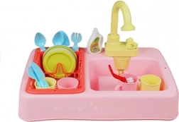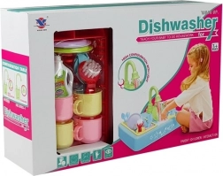 Zlewozmywak jest zasilany 3x 1,5V bateriami „AA”, które nie są dołączone do zestawu. Po ich włożeniu do zabawki i ustawieniu przełącznika w pozycji „ON” kranik zasysa wodę i można rozpocząć zabawę w zmywanie.