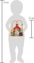 Zawiera dwie pętelki z 4 i 6 koralikami o różnych kolorach, kształtach i rozmiarach, które stymulują dziecięcą ciekawość i rozwój umiejętności motorycznych.