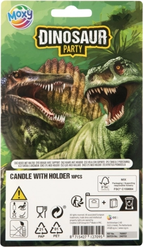 Stwórz na przyjęciu idealny klimat dzięki tematycznym świeczkom z dinozaurami. Dzięki dołączonym uchwytom łatwo umieścisz je w torcie, gdzie będą stabilnie się trzymać i pięknie się prezentować. Produkt jest dekoracją – nie jest zabawką.