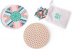 Drewniana plansza, solidne kołeczki i bawełniana torba do przenoszenia oraz przechowywania. Zabawka zapewnia wiele godzin twórczej rozrywki.