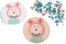 Ta drewniana gra mozaikowa rozwija umiejętności dzieci w formie zabawy. Dzięki bogatej palecie kołeczków dzieci mogą układać obrazki według 6 dwustronnych szablonów lub tworzyć własne, oryginalne wzory. Trwała drewniana plansza i wysokiej jakości materiały gwarantują długą żywotność i bezpieczne użytkowanie.