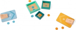 Dla jeszcze większej frajdy wypróbuj warianty zasad: bonus +5 punktów za najwięcej żetonów na tarczach, usunięcie żetonu przeciwnika po trafieniu w niego, wymiana żetonu na krawędzi tarczy, gra z zamkniętymi oczami, tylko niedominującą ręką lub kara −1 punkt za żetony poza tarczami. Gra wspiera rywalizację, motorykę małą i koordynację ręka–oko.